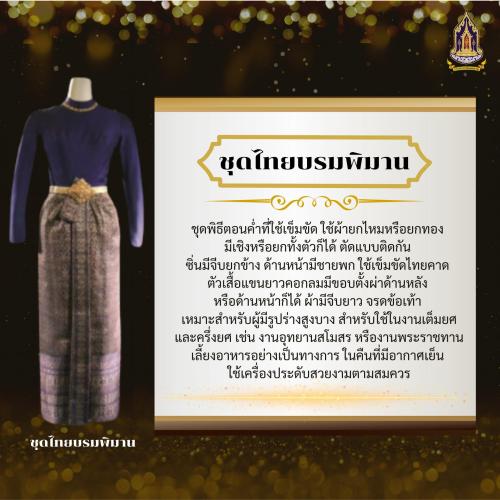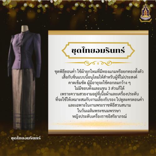 📌 หมายเหตุ: การแต่งกายด้วยชุดไทยพระราชนิยมสีดำ เป็นการแสดงความสำนึกในพระมหากรุณาธิคุณ และร่วมถวายความอาลัยแด่ สมเด็จพระนางเจ้าสิริกิติ์ พระบรมราชินีนาถ พระบรมราชชนนีพันปีหลวง พระผู้เสด็จสู่สวรรคาลัย ด้วยความจงรักภักดีเป็นล้นพ้นอันหาที่สุดมิได้